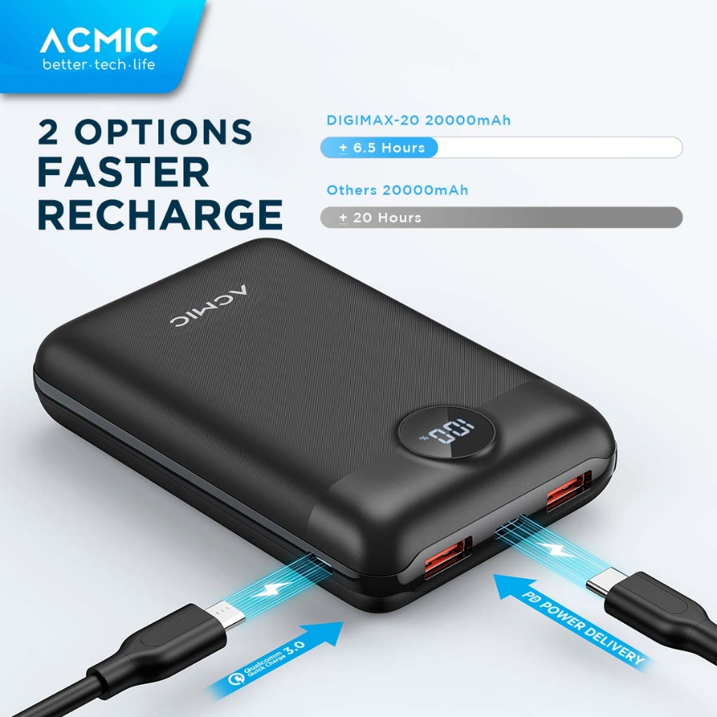 ACMIC DIGIMAX 20000mAh Powerbank Mini 22.5W Fast Charging Type C Black