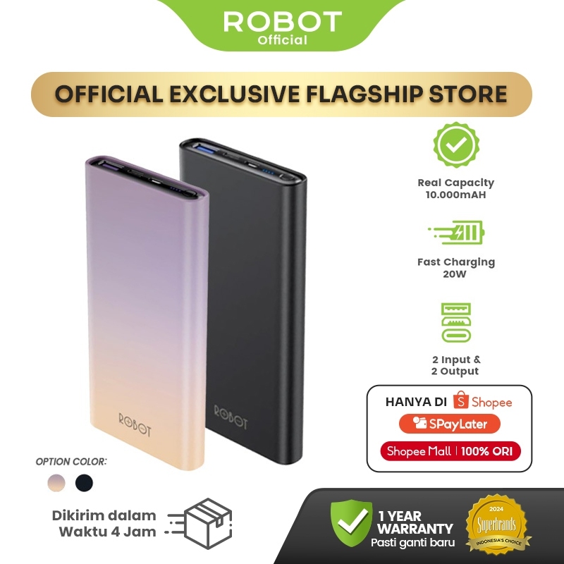 ROBOT Powerbank 10000mAh Dual Port 20W PD Fast Charging Quick Charging 3.0 Power bank Gradasi RT11 Original - Garansi 1 Tahun