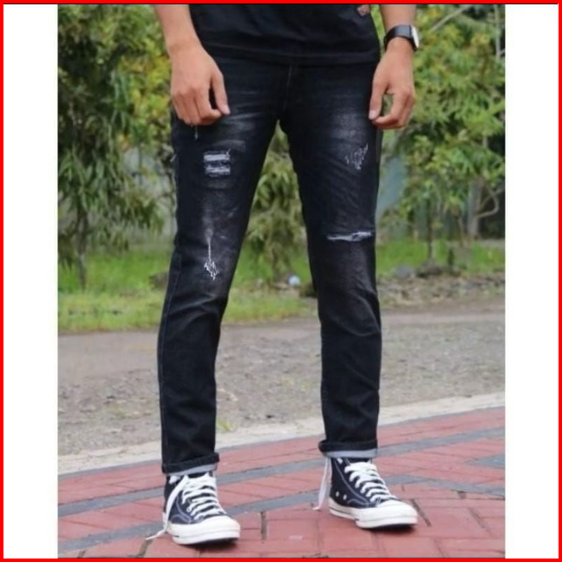 Celana Jeans Melar Blackjazz Ripped Sobek Bikers Street Style Celana Jeans Pria