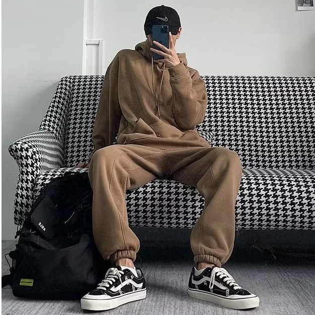 One Set Setelan HOODIE JOGER polos M-5XL Up Jumbo Bigsize Jaket Fleece Korean Style Wanita Pria Oversize 6XL 5XL 4XL 3XL