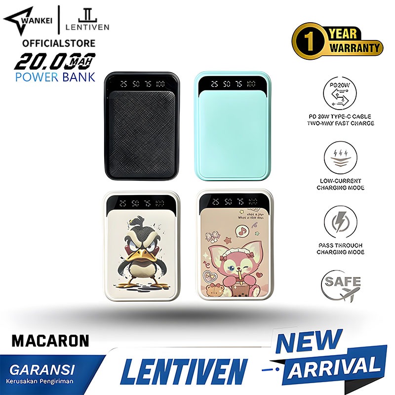 WANKEI LENTIVEN PowerBank 20000 mAh Cute Mini KartunScreen Digital Display