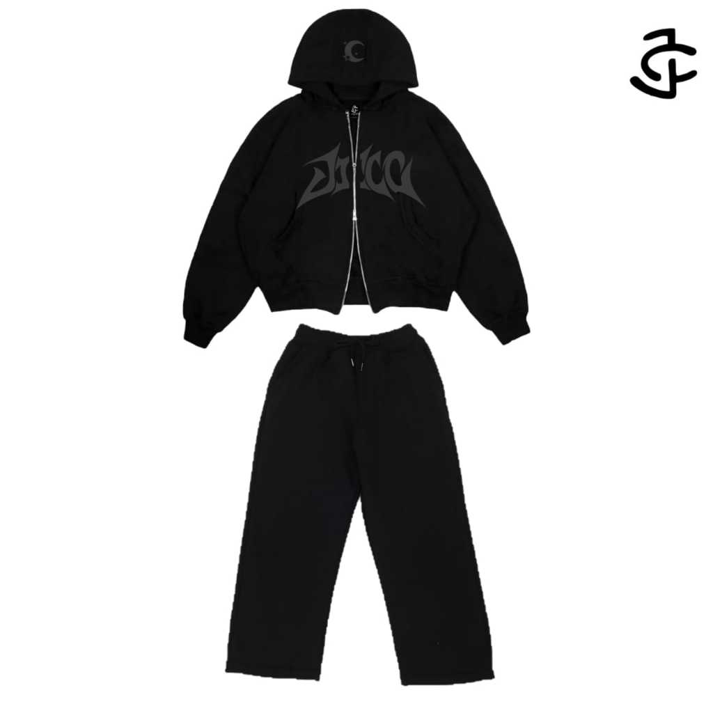 JICO - Satu Set Baggy Pants Sweater Hoodie Zipper Double Zip Uni Oversize Sablon GRAVITY Abu Bahan Fleece Gramasi 280 Si