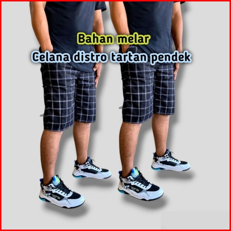 Murah Celana Distro Tartan Pendek Motif Stretch Pria