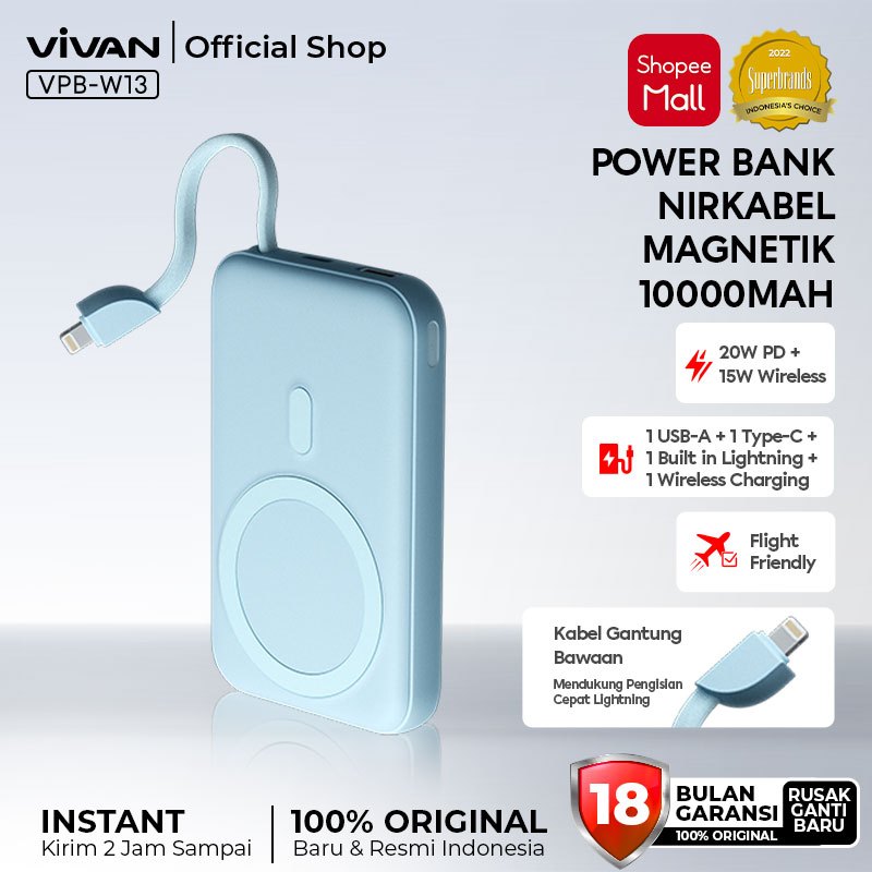 VIVAN Wireless Powerbank VPB-W13 PD 20W 3 Output Fast Charging Magnet Kuat Garansi 18 Bulan (2)