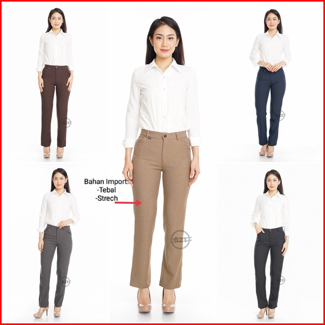 Celana Kerja Kantor Wanita Hitam Polos Panjang Formal Bahan Dasar Ukuran Standar Dan Jumbo Celana Kerja Standar Jumbo