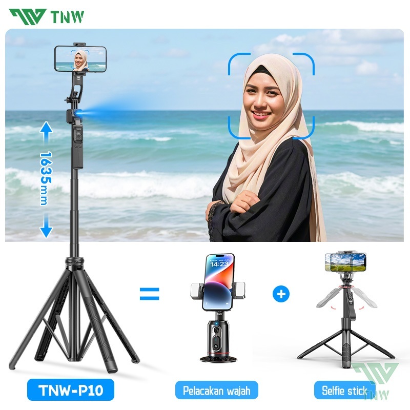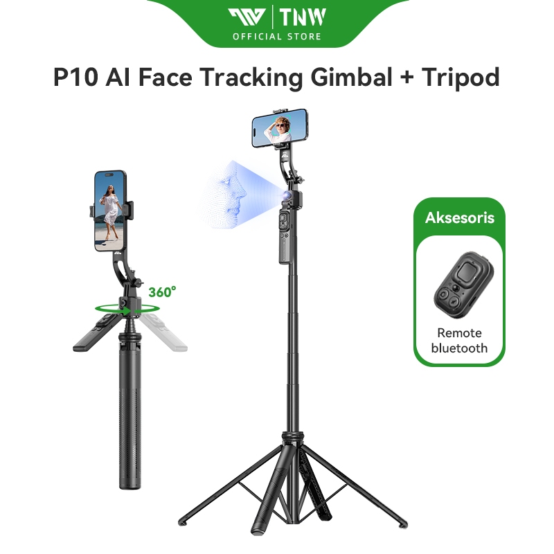TNW P10 Auto Face Tracking Tripod Rotasi 360° Selfie Stick Gesture Control AI Gimbal Stabilizer