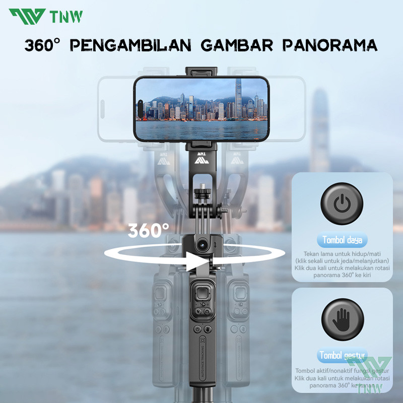 TNW P10 360° Auto Face Tracking Tripod Bluetooth Tongsis AI Gimbal Stabilizer Gesture Control Tripod Handphone Selfie Stick
