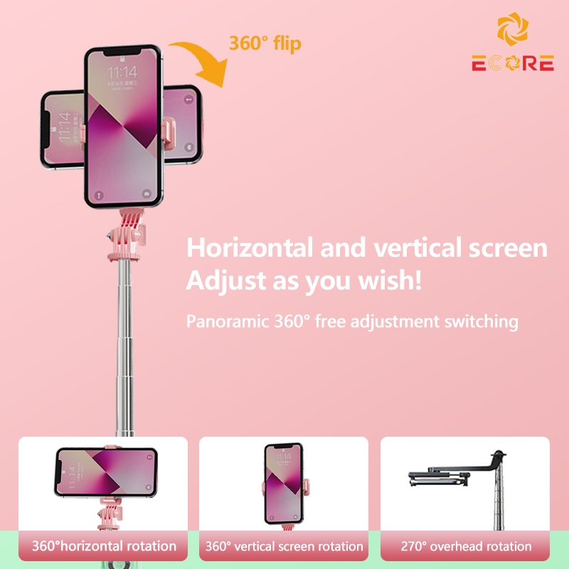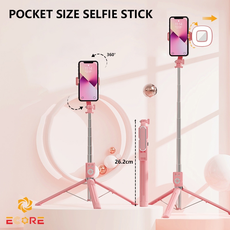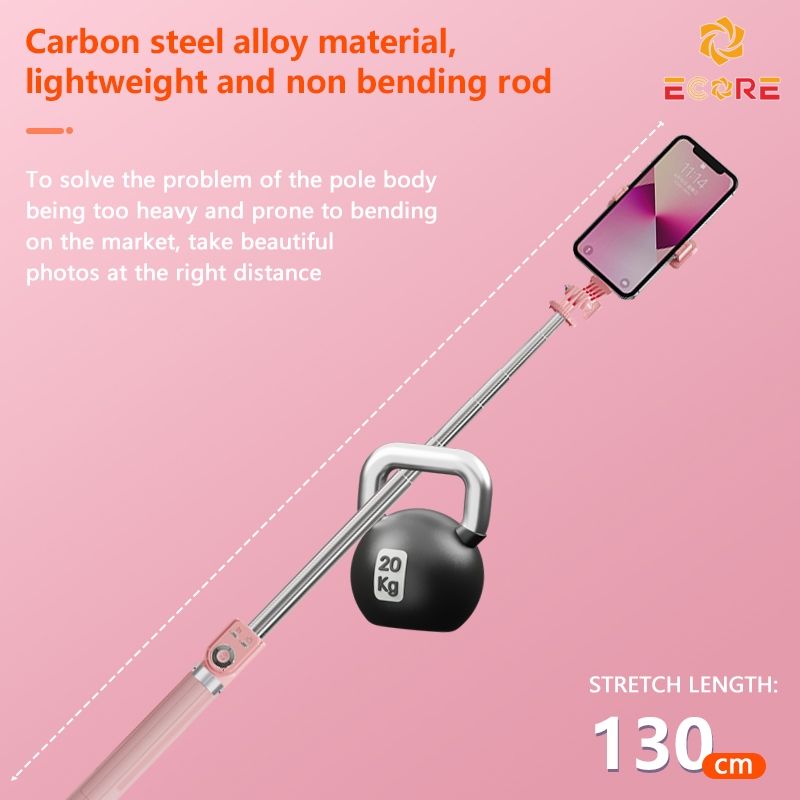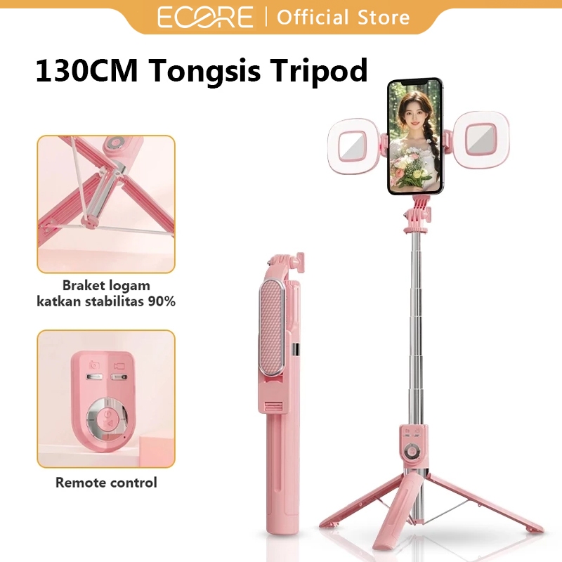 Ecore P86 Tongsis Selfie Stick Tripod Bluetooth 130cm Dual Fungsi Tripod & Monopod Remote Koneksi Bluetooth 7 Tombol Multi-Fungsi Lampu LED & 360° Rotas