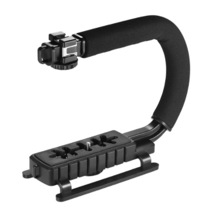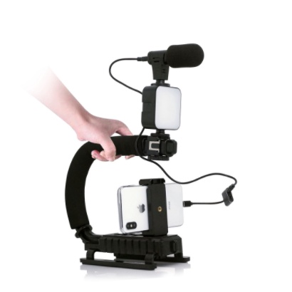 Gimbal Stabilizer Handphone Kamera DSLR Handle C Video Making Set LED Microphone Recording Stabilizer Ringan