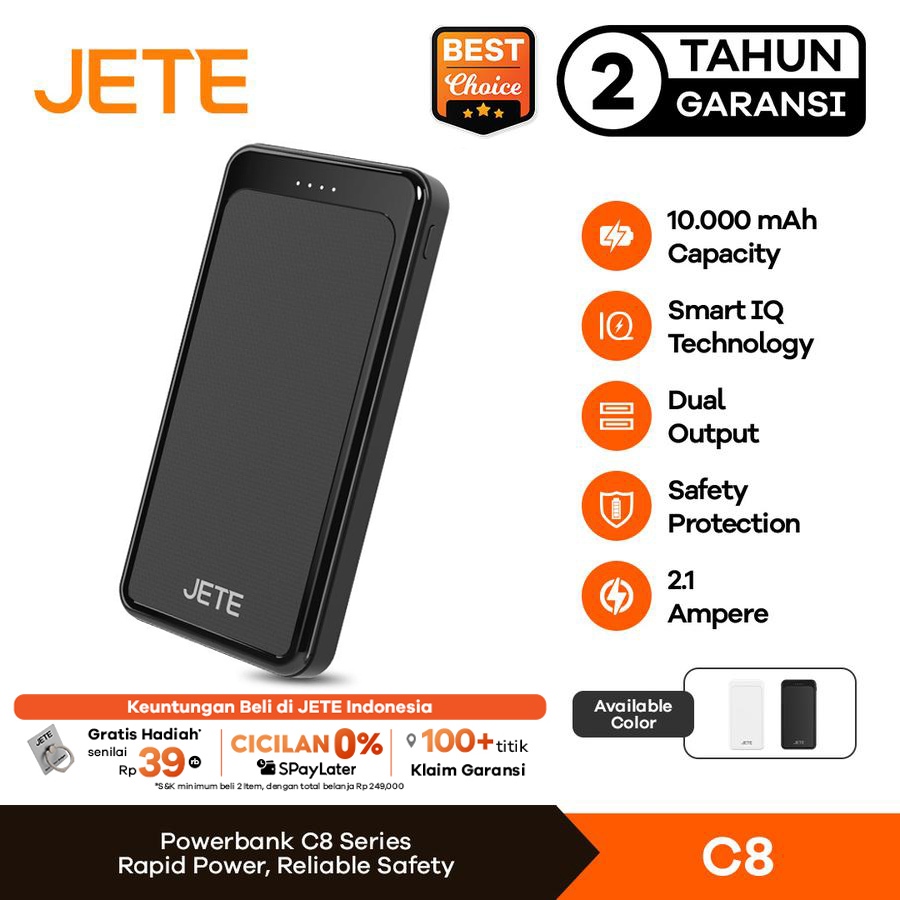 JETE Powerbank Fast Charging C8 10000mAh Power Bank Portable Dual USB Port Output Input Type C