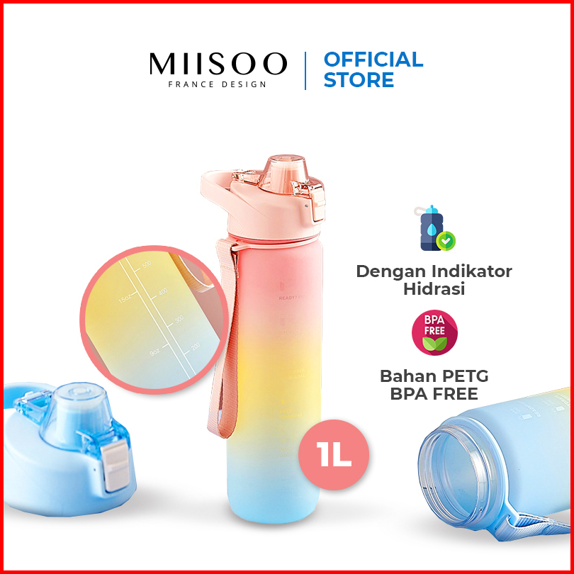 Miisoo Botol Minum Tumbler Olahraga Sport Unik Botol Motivasi 1000ml Botol Penanda Gradient Gradasi