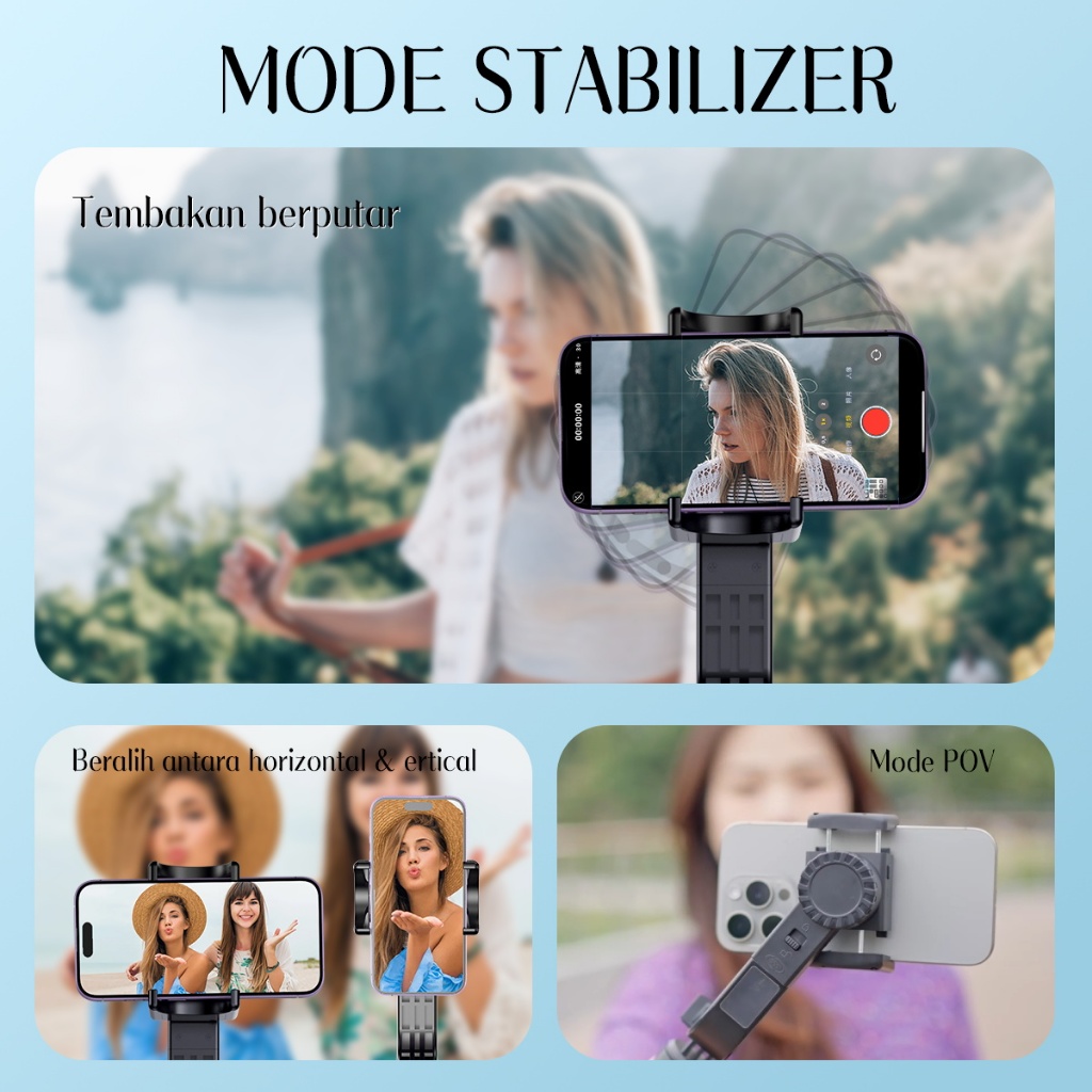 Jqvitek Gimbal hp Stabilizer Handphone Bluetooth Mini Selfie Stick Auto Balance Gimbal genggam anti-guncang