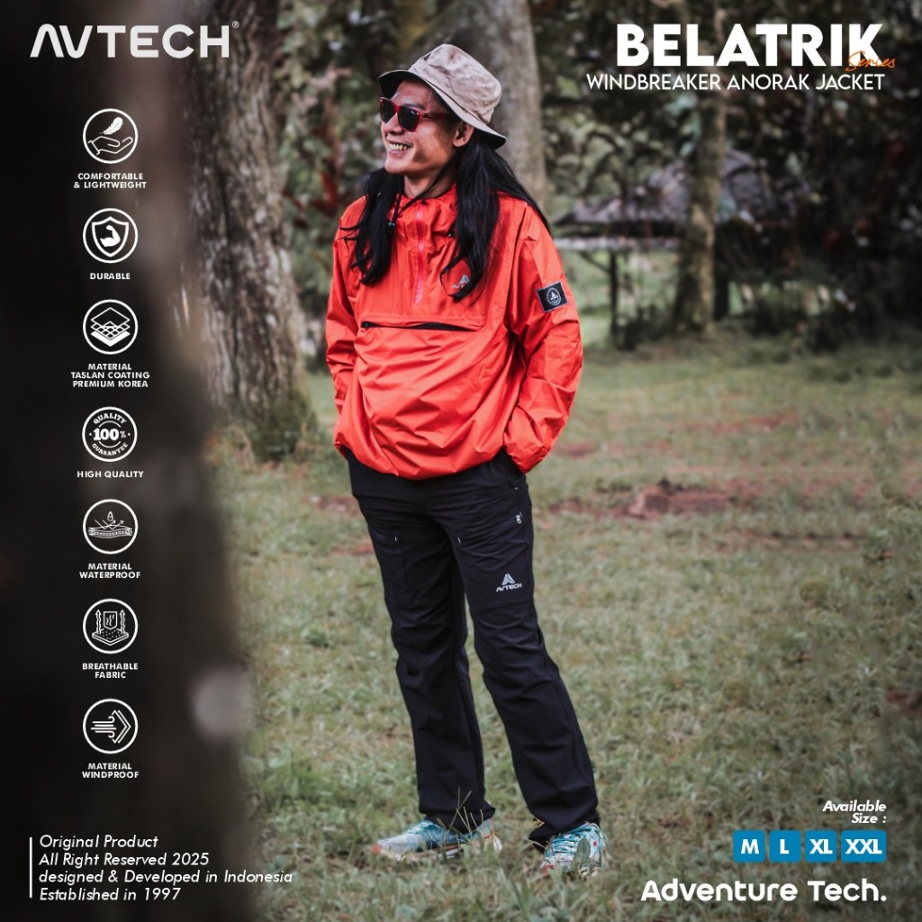 Avtech - Jaket Pria Wanita Windbreaker Waterproof Outdoor Hiking Gunung Camping Hujan - Belatrik