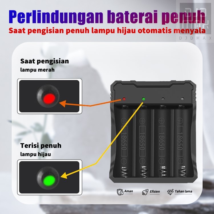 DJDMax Pengisi Daya Baterai Litium Aman dan Efisien, Pengisi Daya Otomatis Berhenti Saat Penuh, Dilengkapi Colokan, Pengisi Daya Cepat Baterai