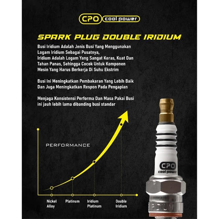 CPO Cool Power Busi Double Iridium | Upgrade Tarikan & Tenaga Motor | Untuk Matic Sport Bebek | NMAX, Aerox, Vario 150,