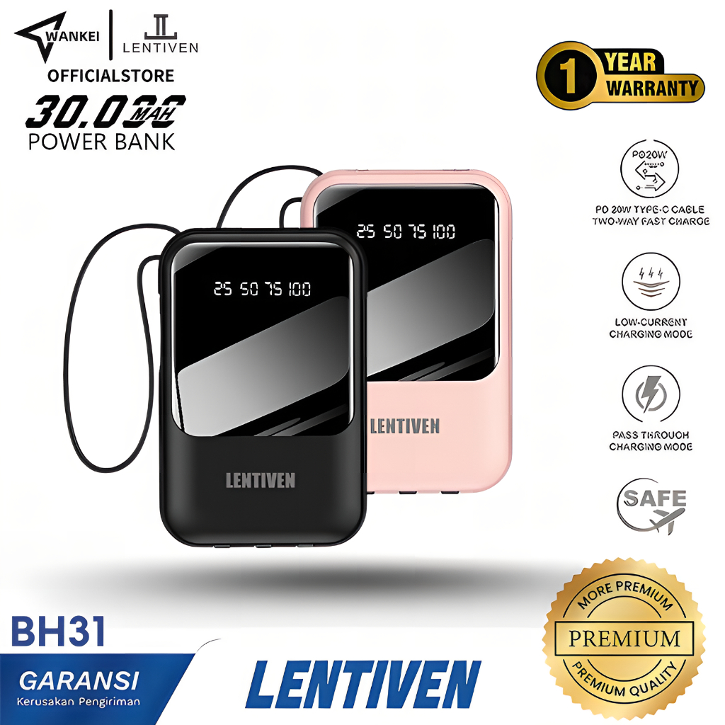 WANKEI LENTIVEN Powerbank 30000 MAH Mini Size with 4 USB Fast Charging LED Display BH31