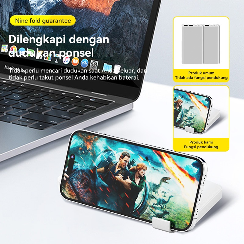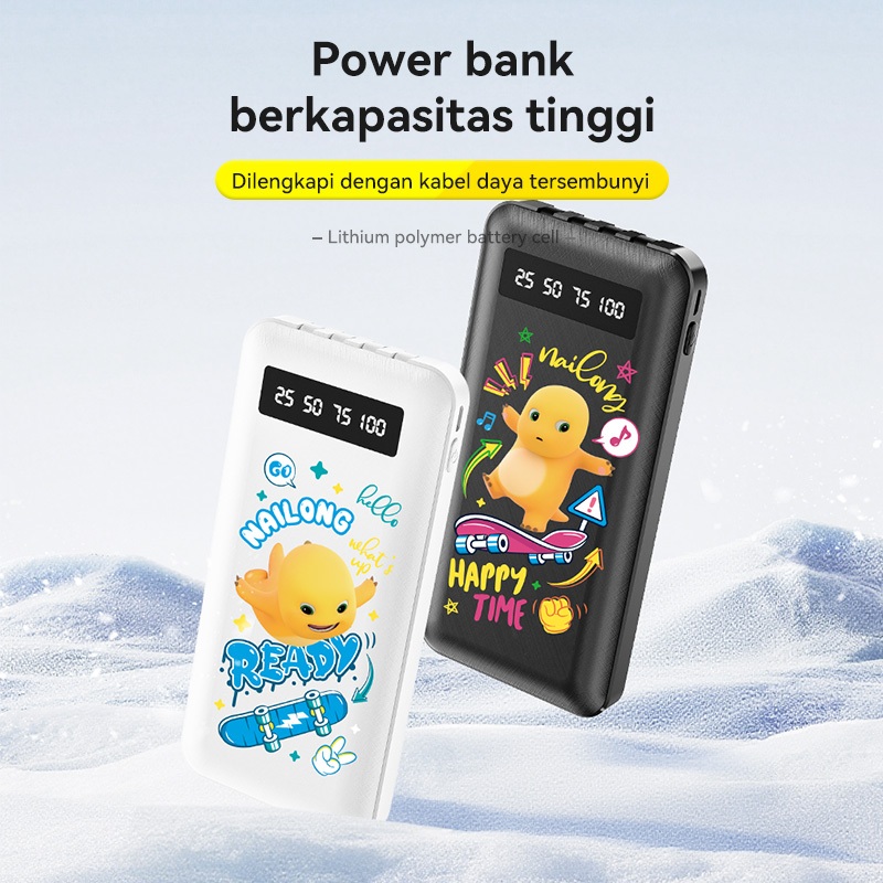 BASIKE Powerbank 10000 mAh Fast Charging Dual USB LCD build-in Cables Power Bank Mini Murah Ori Lucu