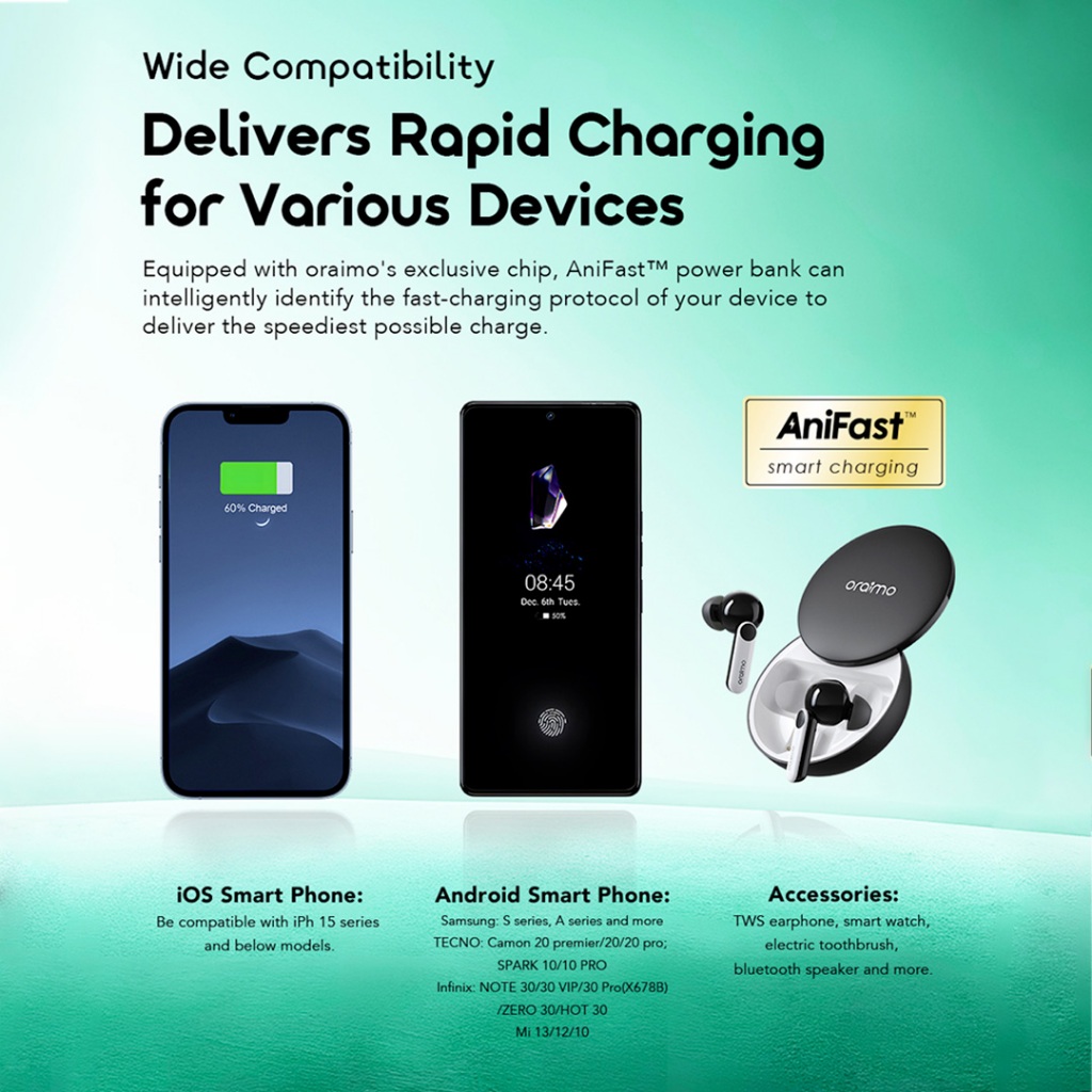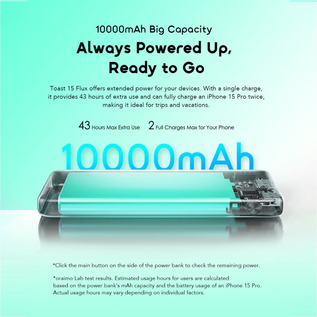 oraimo Powerbank Flux 15 Flash OPB-1100D Fast Charging Charger Power Bank 10.000mAh 15W Fast Charging Type C Cute Pastel Colors