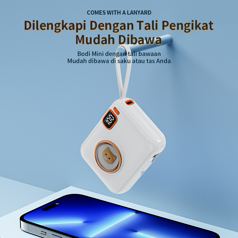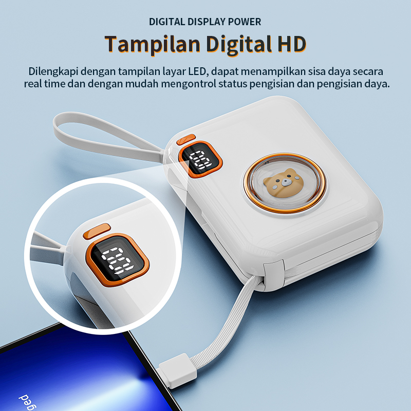 BASIKE Powerbank Mini Original Panda Lucu with Kabel USB Type C Lightning LCD Tampilan Daya Digital