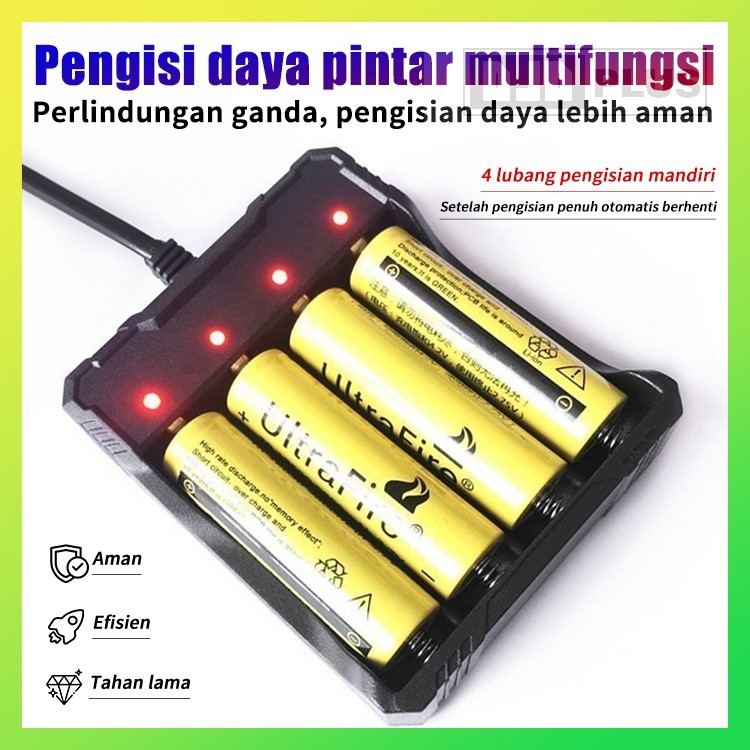 DJDPlus Charger Baterai Litium 2/4 Slot | Pengisi Daya Baterai 18650 Aman & Efisien | Charger Otomatis Berhenti Saat Penuh | Fast Charging