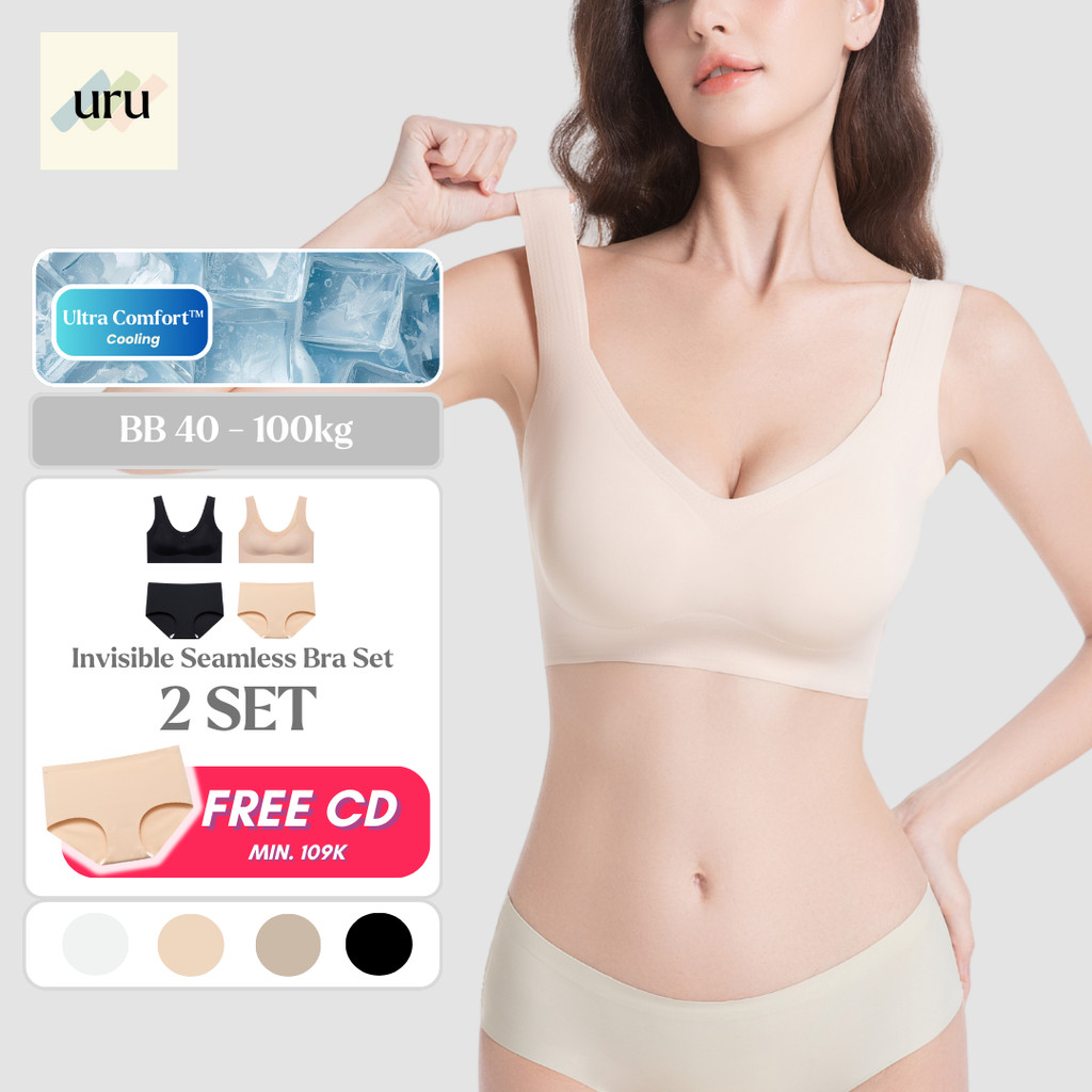 URU 2SET Signature Seamless Bundle Pack | Bra Tanpa Kawat Anti Jiplak + CD Nylon beha bh jumbo cup