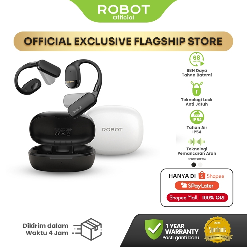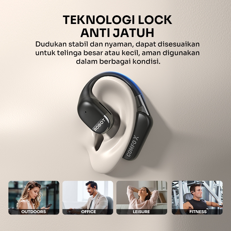 ROBOT Earphone OWS Sport IP54 Bluetooth 5.4 TWS True Wireless Earbuds Headset Lari Comfo X Original - Garansi 1 Tahun