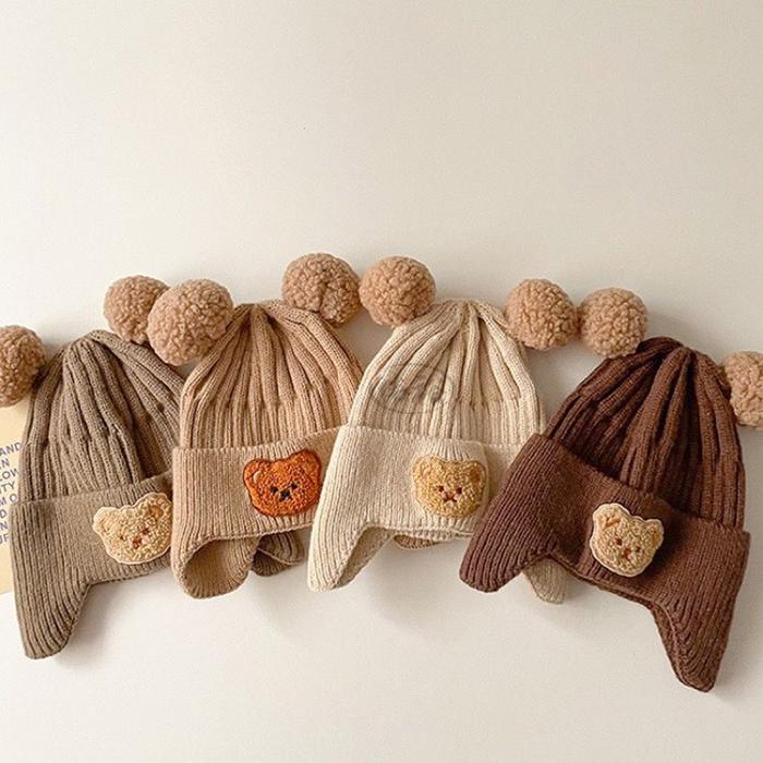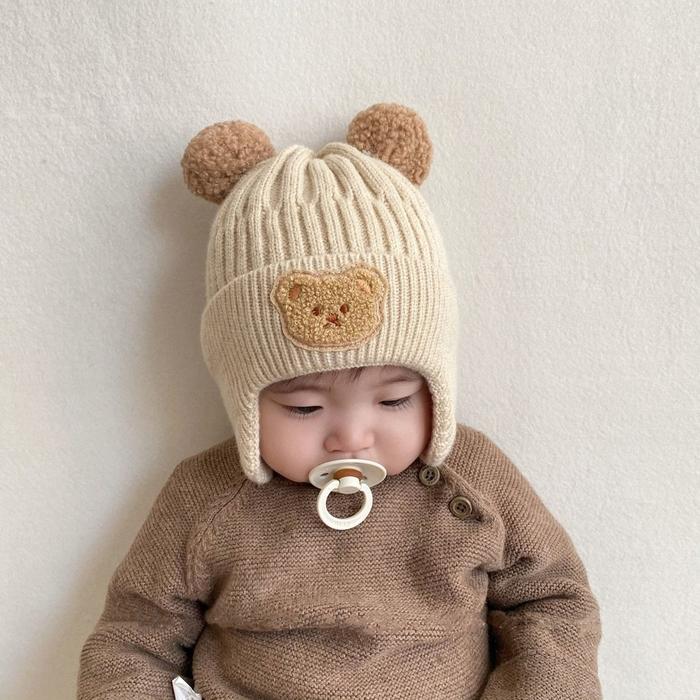 Promo Topi kupluk bayi pompom bear model kekinian topi bayi 0 - 3 thn