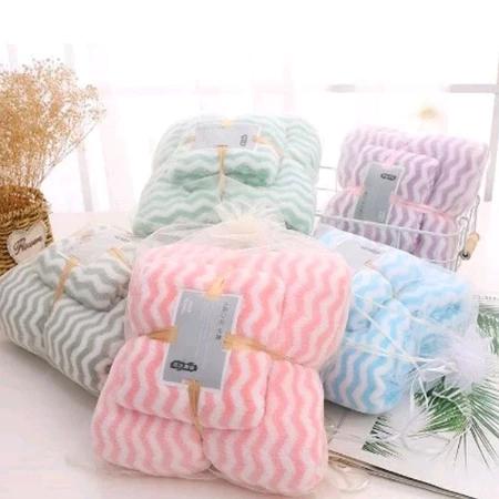 Promo Handuk Korea Set 2 in 1 Motif ZigZag Handuk Mandi & Handuk Wajah/ Handuk Dewasa