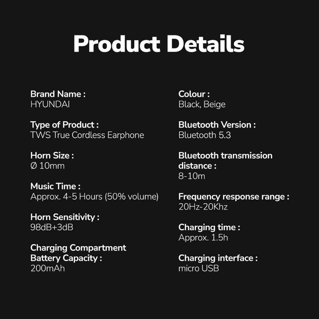 Hyundai T21 Bluetooth Earphone TWS Headset Earbuds Earphone