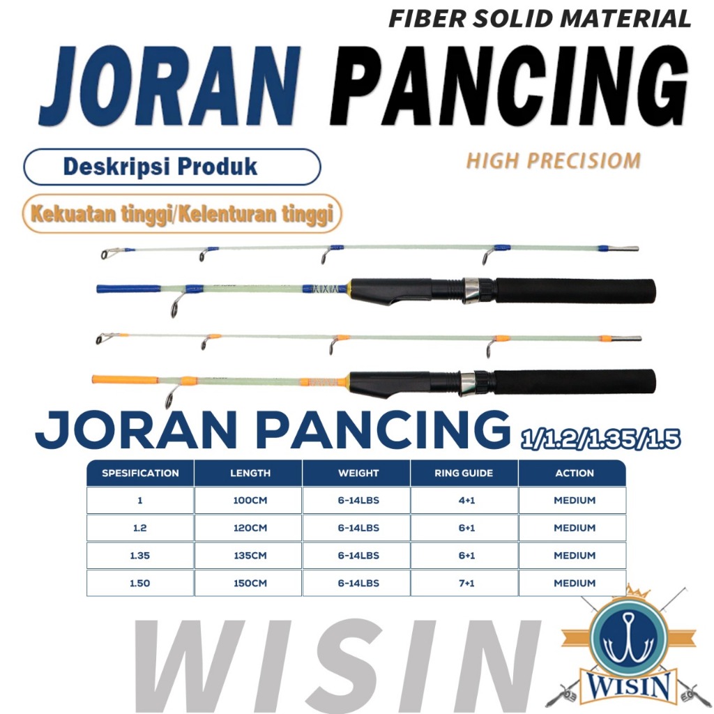 WISIN Joran Pancing Model Transparan 1.00m - 1.50m Joran Pancing Bahan Fiber Solid Cocok buat Udang Super Lentur Joran SAHARA