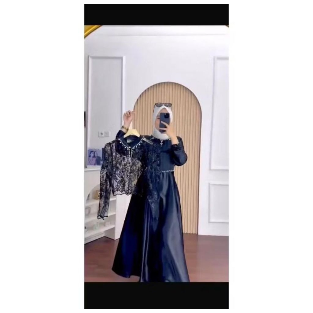 DRESS GAMIS MEWAH BAHAN SILK PREMIUM MIX BRUKAT APLIKASI ET MUTIARA GAMIS PESTA KONDANGAN/GAMIS SAKURA DRESS KONDANGAN WANITA TERBARU 2026 WARNA BURGUNDY MAHOGANY HITAM NAVY UKURAN S M L XL XXL XXXL