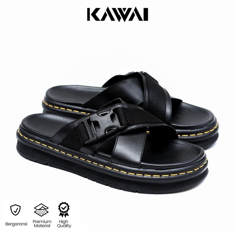Sandal Slide Pria Hitam Empuk Anti Slip Casual Harian Nyaman Premium
