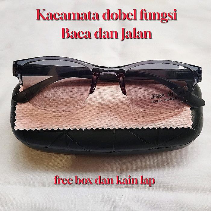 Kacamata Dobel Fungsi Baca Dan Jalan Lensa Redup Pria Wanita - Hitam Redup +1.00