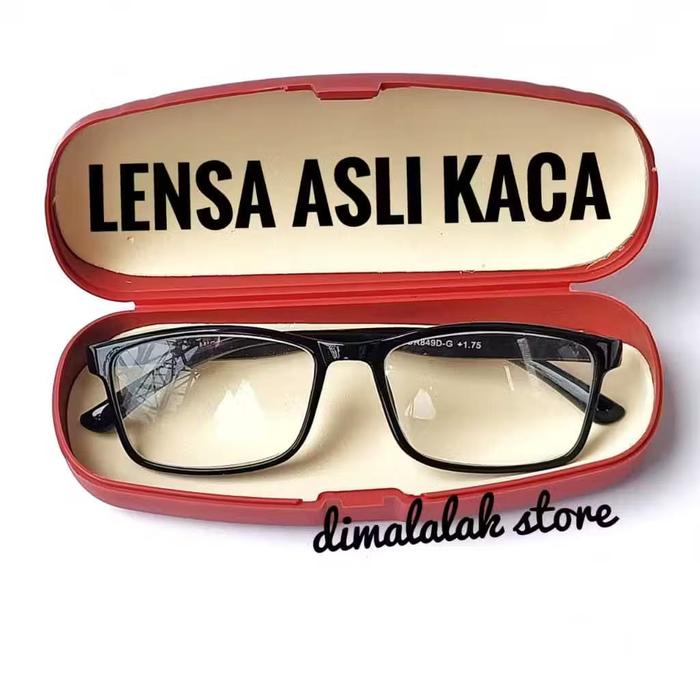 KACAMATA BACA LENSA ASLI KACA PLUS 1.00 SAMPAI PLUS 3.00 UNTUK RABUN DEKAT FREE BOX DAN LAP - HITAM PLUS +1.00