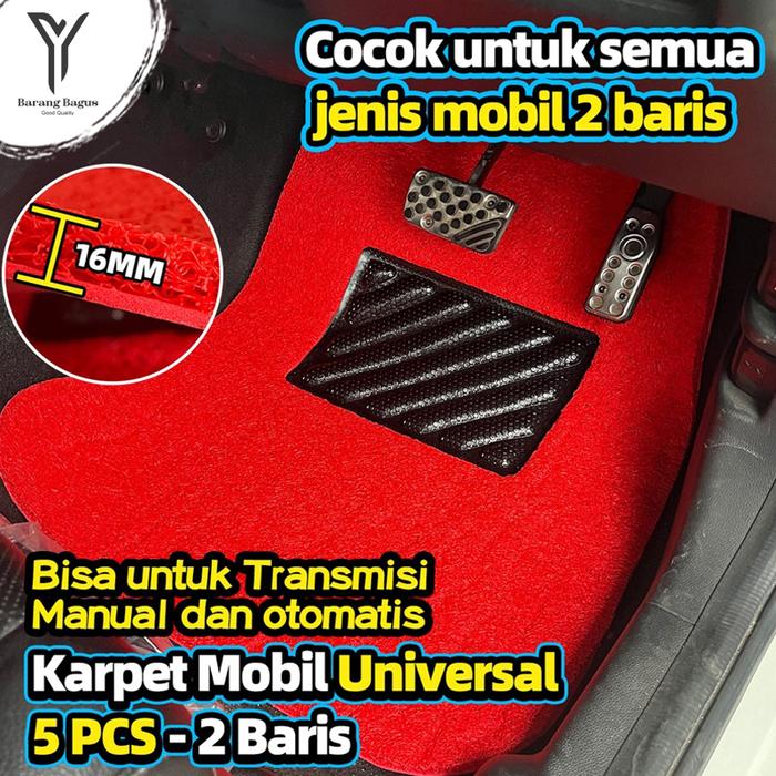 Karpet Mobil Mie Bihun Universal / Umum Cocok Untuk Semua Mobil 1 Set=5 Bagian car Karet Sporty - HITAM