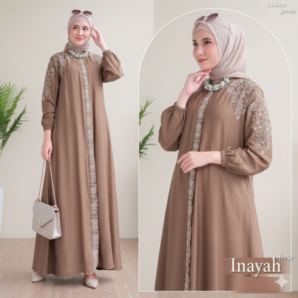 GAMIS INAYAH DRES BAHAN BORDIR BAJU KONDANGAN SERAGAMAN LEBARAN 2026 TERMURAH KUALITAS TERBAIK