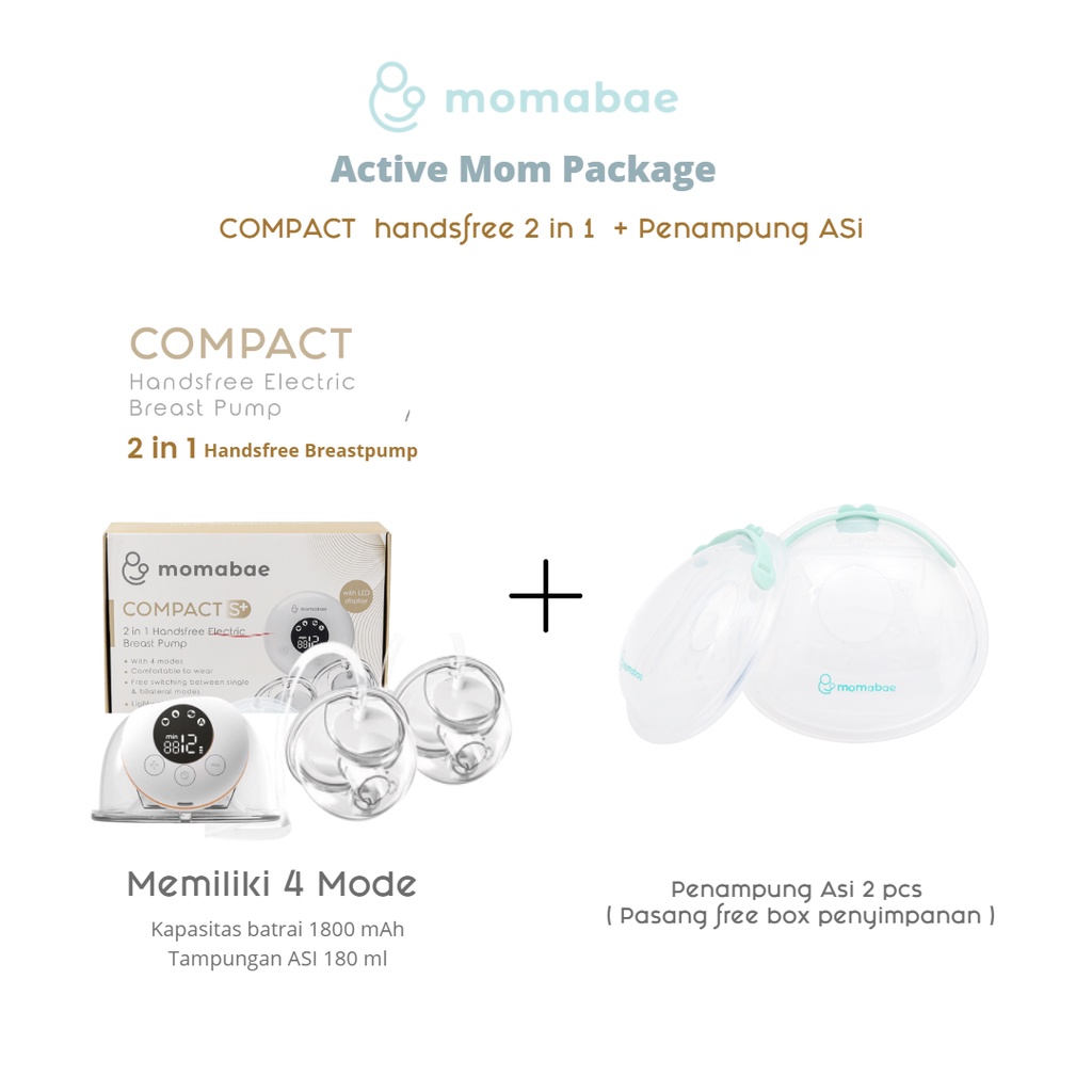 Momabae – Bundling Compact S+ 2 Ini 1 Dengan Penampung Asi / Handsfree Breast Pump / Pompa Asi Elektrik / Breast Pump El
