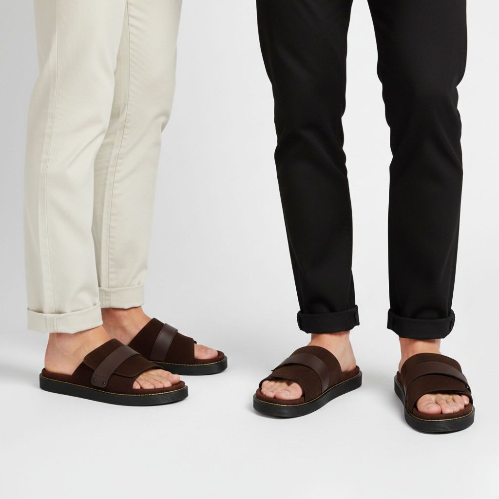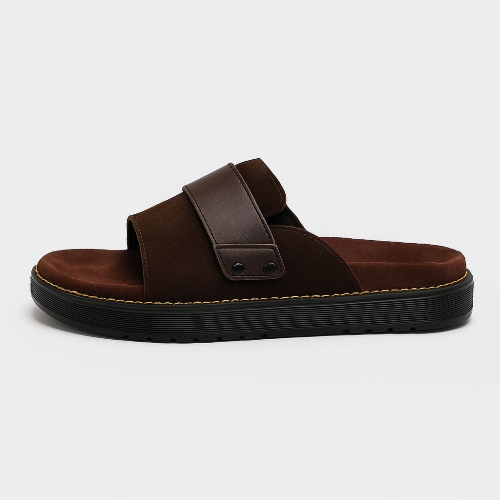 Navara Footwear - Sandal Suede Casual Pria Full Brown Sandal Slide Suede NVR Debonaire 113