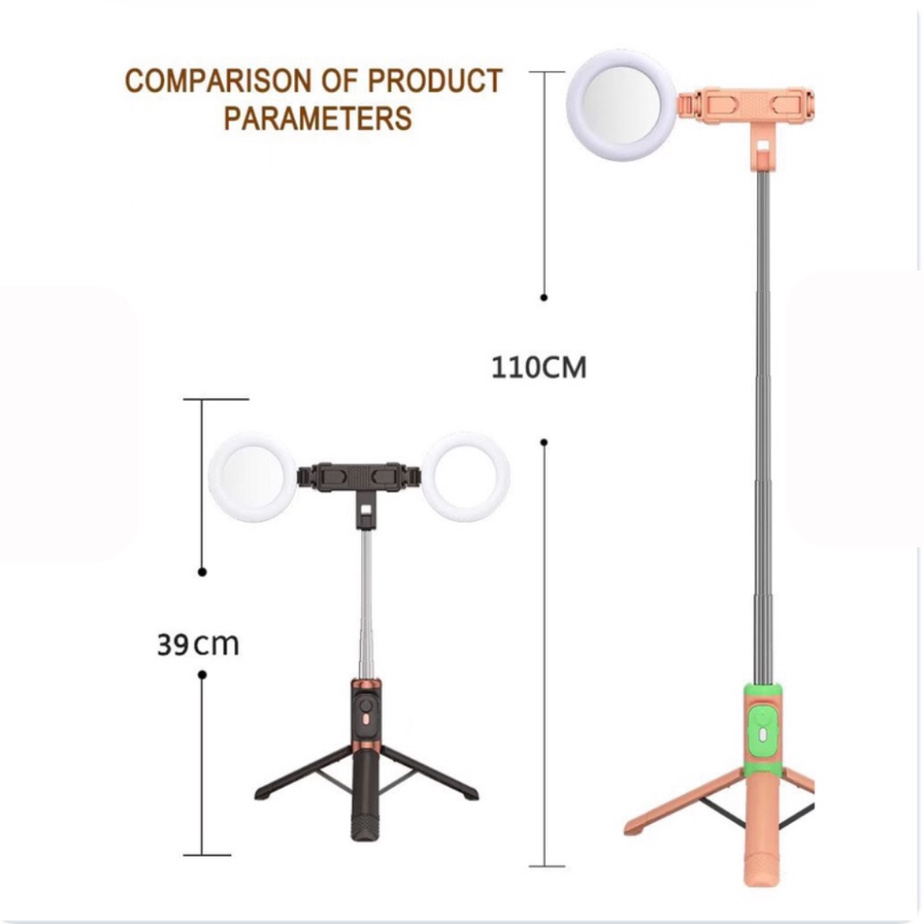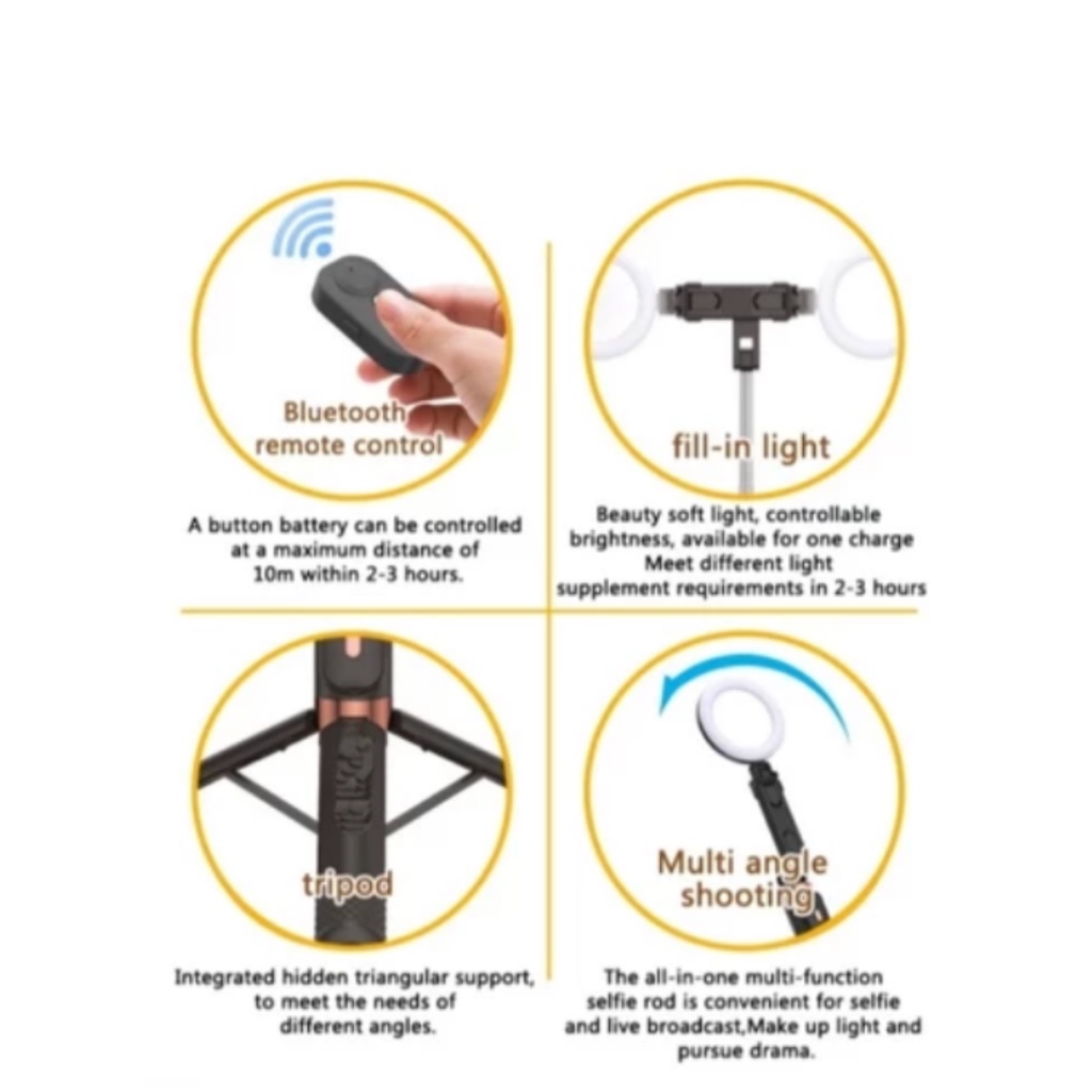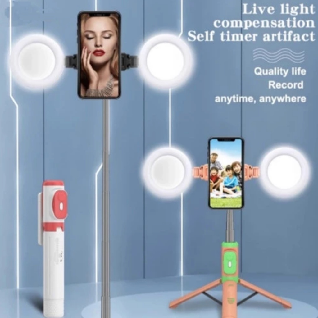 Tongsis Tripod Bluetooth Remote HP Selfie Stick 3in1 360 Rotation LED Lamp Extension 1.7 meter 170cm