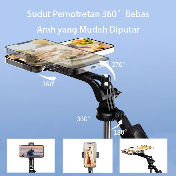 Mipanda 4in1 Tongsis Tripod Bluetooth Selfie Stick 170CM Rotasi 360° Selfie Livestreamer Light Stand/HP Holder Dengan 1/4 Adaptor