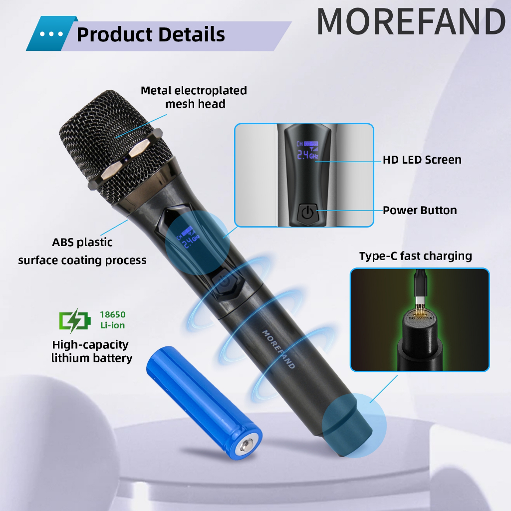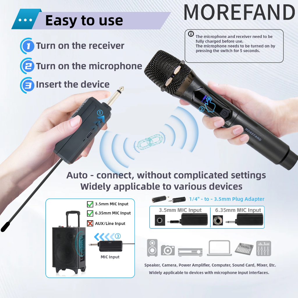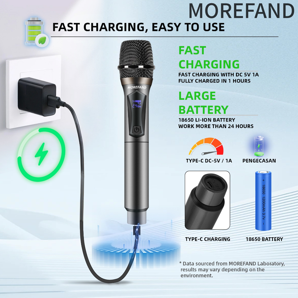 MOREFAND Mikrofon nirkabelisi ulang mikrofon genggam penyebaranUHF Pasang dan mainkan PeralatanBernyanyi wireless original UHF FM