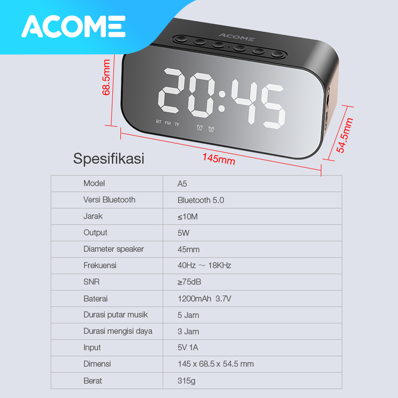 ACOME Super Bass Speaker Bluetooth A1 A5 A10 A15 A16 A17 A20 5.2 10W High Power 3 Playback Modes Garansi Resmi 1 Tahun
