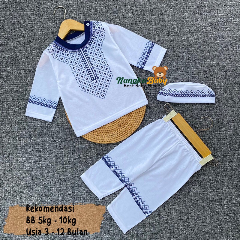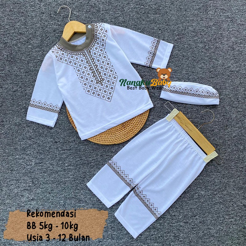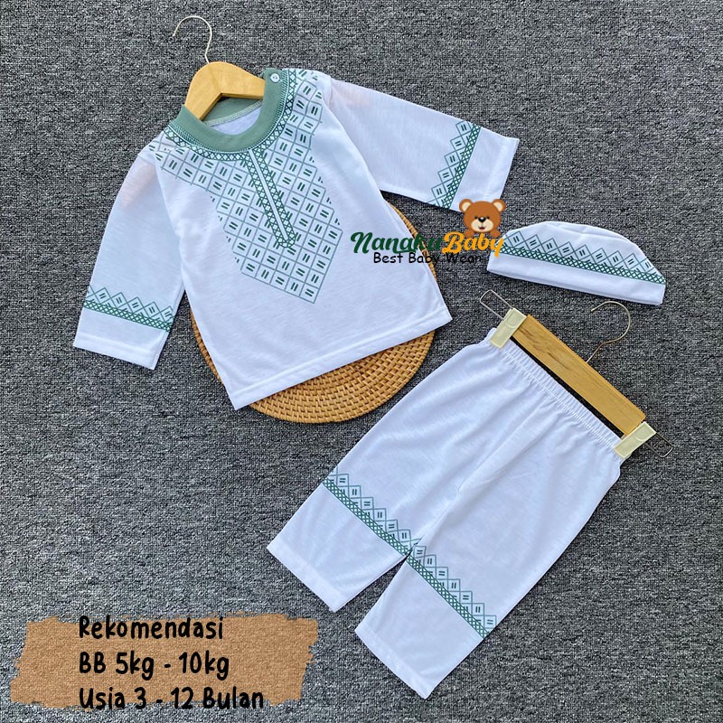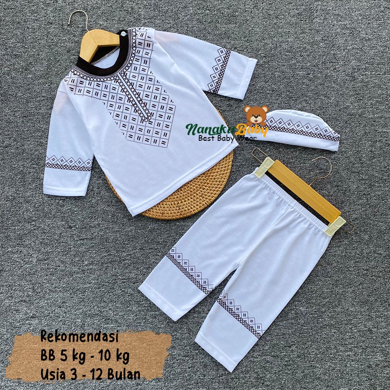 Nanaku Baby - Setelan Koko Bayi Usia 3–12 Bulan Lengan Panjang Kancing Bahu | Setelan Koko Celana Panjang Free Peci