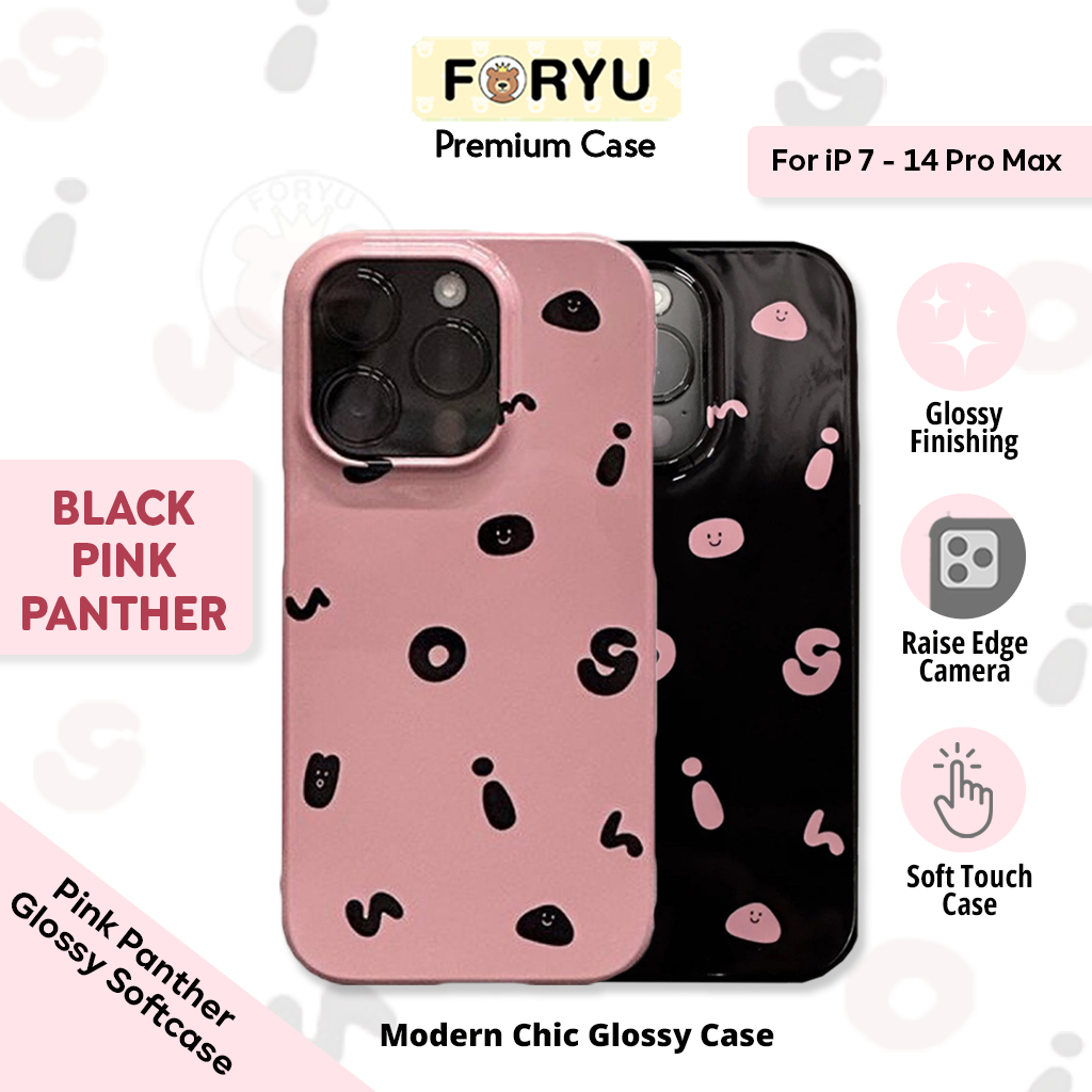 Foryu Black Pink Panther Glossy Softcase Casing untuk iPhone 7 8 Plus XR X XS Max 11 12 13 Mini 14 ProMax