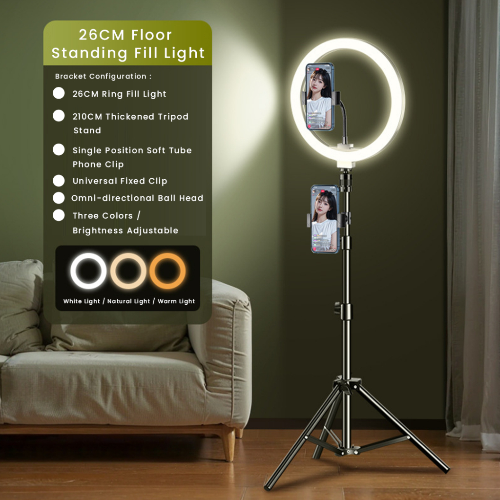 Mipanda 46CM/210CM Tongsis Tripod+Ring Light 32cm Rotasi Livestreamer Light Stand/HP Holder