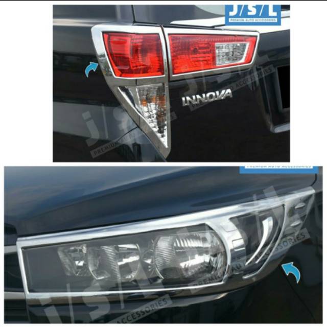 Paket garnish lampu depan dan belakang all new Innova Reborn 2016 2018 2021 2024 Hitam Chrome Carbon jsl