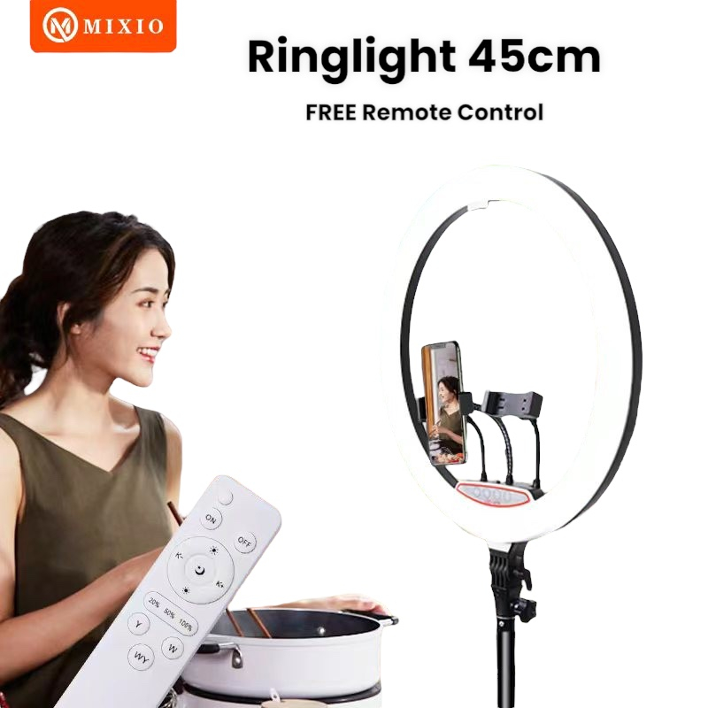 MIXIO Ring Light 45cm + Light Stand Tripod 2M with 3 Holder HP & Remot