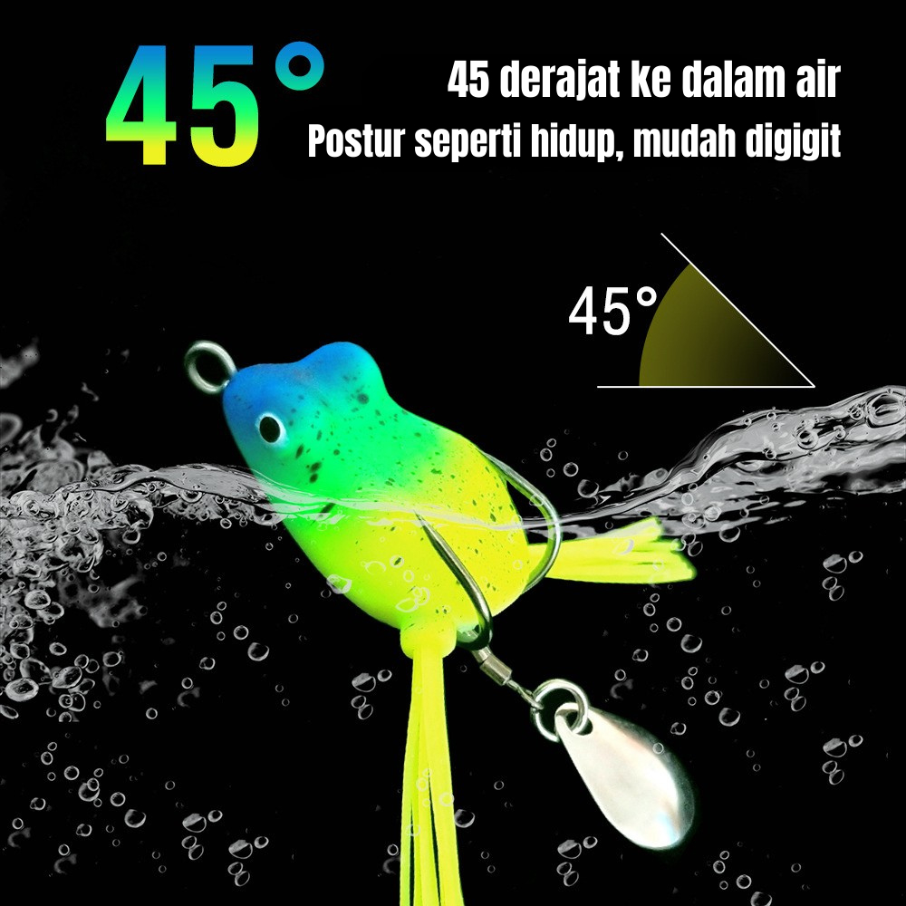 Umpan Pancing Soft Frog Lure 3cm/4g Casting Gabus Toman Dengan Spiner Dan Ekor Bionik Bentuk Kodok