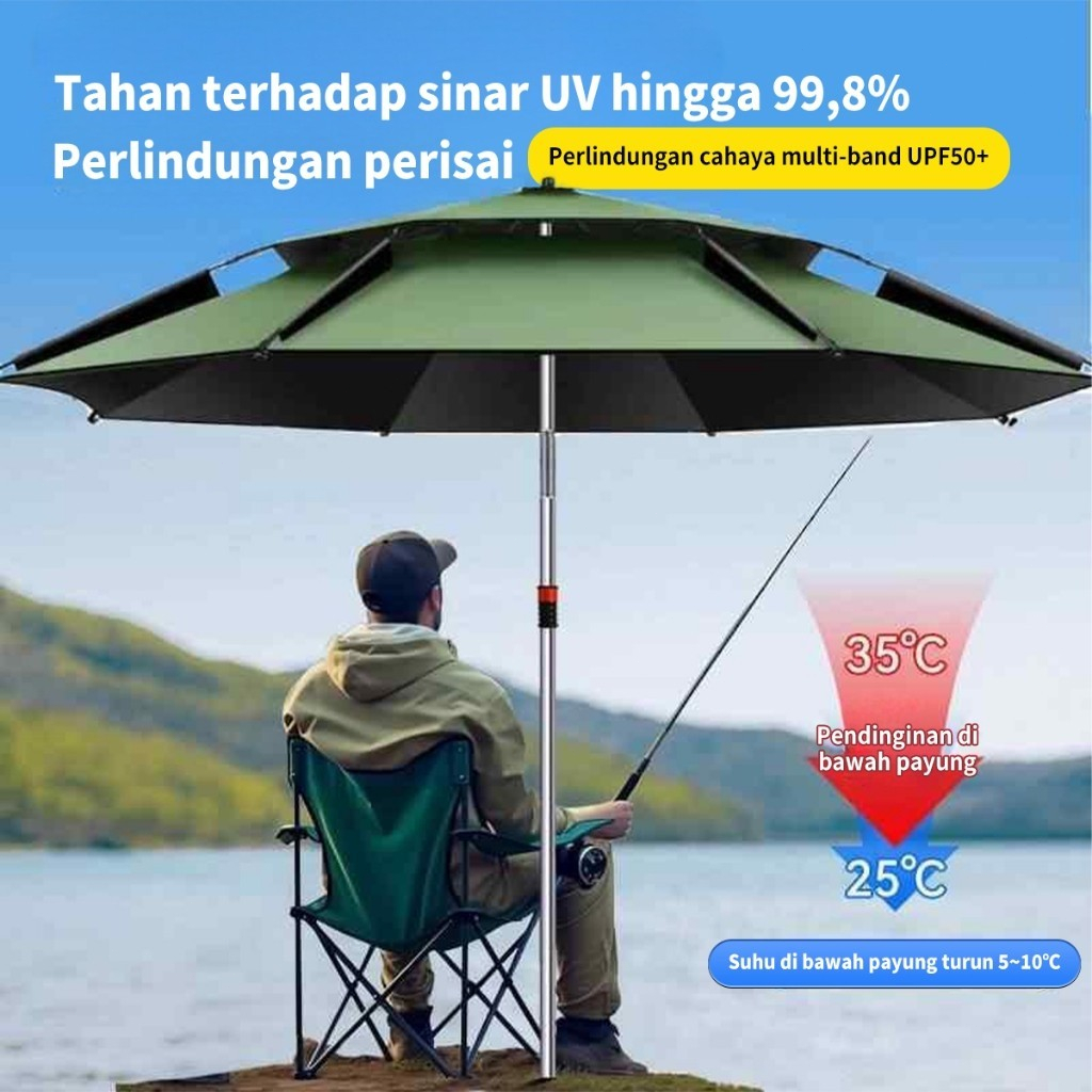 JT Payung pancing lipat multi-arah tebal, tahan hujan, anti sinar matahari dan UV, cocok untuk penangkalan ikan outdoor.
