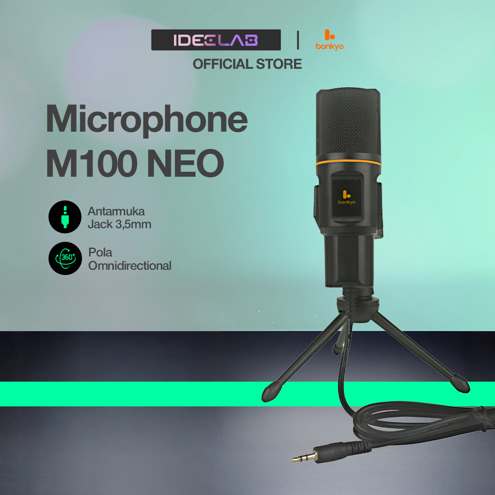 IDEELAB&Bonkyo M100Neo Mic Microphone Omnidirectional 3.5mm DSP HiFi Audio Live Stream Podcast Rekaman Vokal Jernih